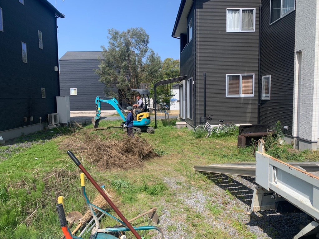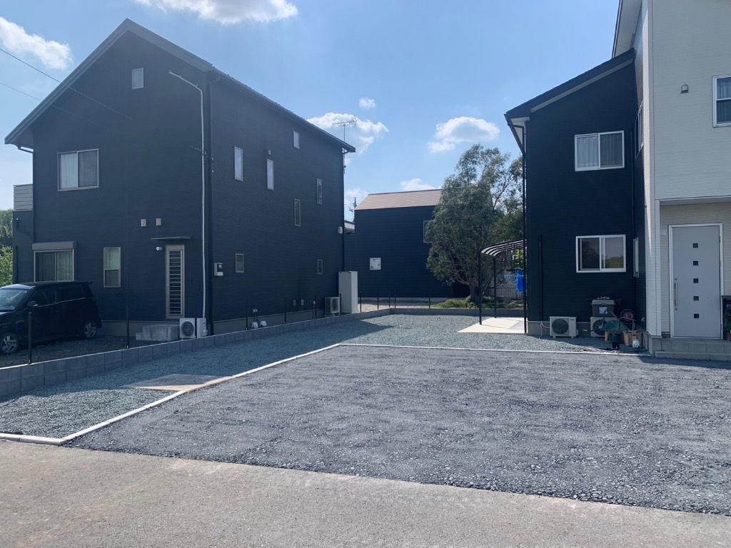 お庭を整えて砕石を敷きました!砕石を引くだけで雨が降った時の泥なども軽減できます。