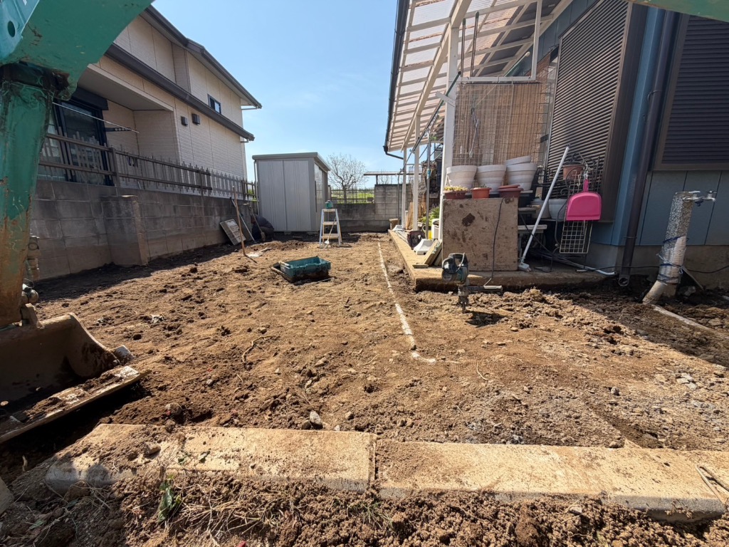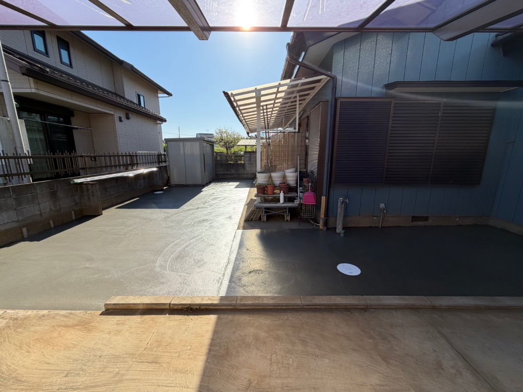 お庭のお手入れが難しくなったためにお庭全面にコンクリートを敷きました。