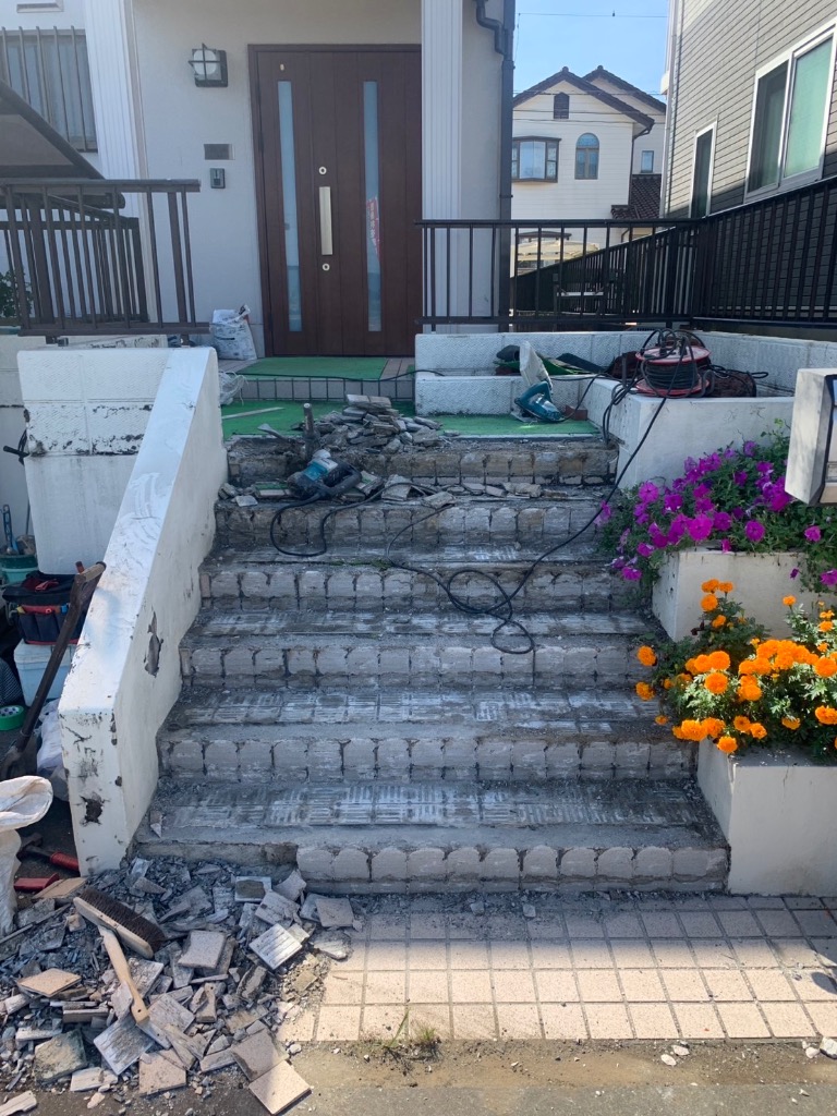 中古物件を購入されたお客様の玄関前のタイル貼りの施行でした。