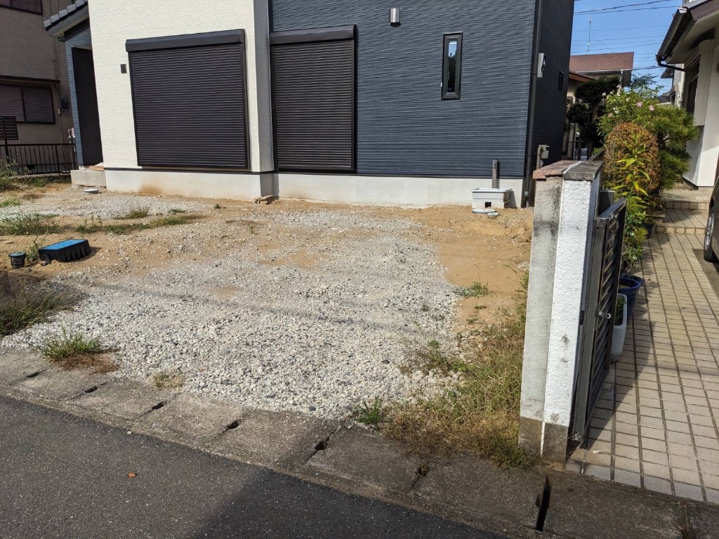 お庭に幅を取られて駐車場が1台しかなかったところ、プラス1台分の駐車場を増設いたしました!